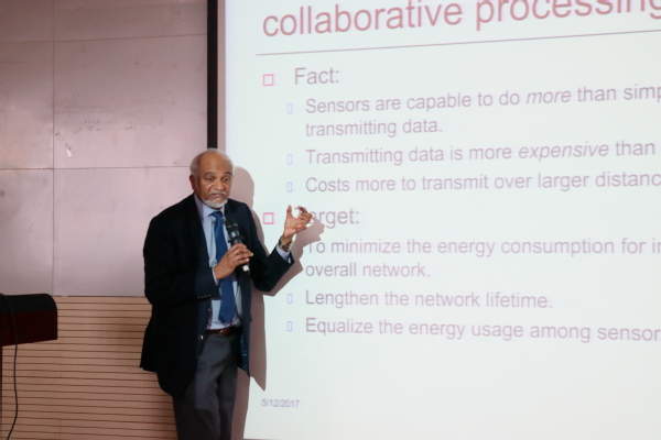 5月12日下午三点半,3003新葡官方网站邀请到伊利诺伊大学芝加哥分校的Rashid Ansari教授,在大学生活动中心419进行了题为无线传感器网络中节能数据聚合的新方法的讲座。来自全院各班的120名本科生参与了讲座,并进行了学术讨论。学生们积极踊跃地进行提问交流,从专业知识探讨延伸到海外学习体验,现场气氛热烈,不少学生在会后继续向教授进行请教。